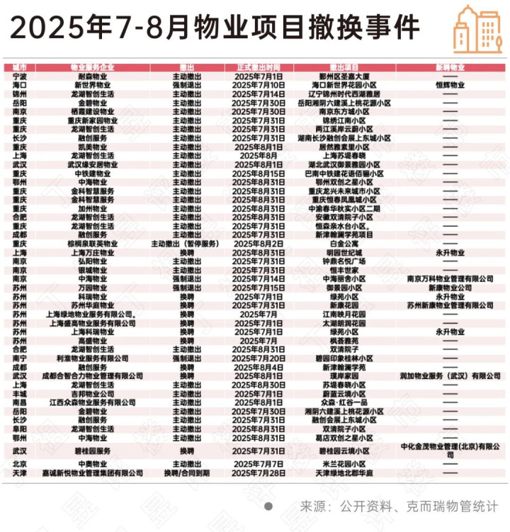 另据克而瑞物管不完全统计,仅2025年7月以来,就有近50个项目撤场。
